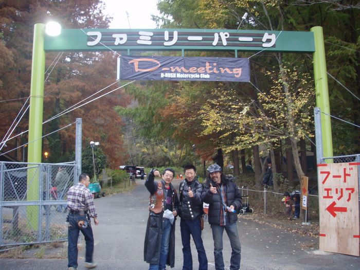11月11日、東京サマーランドで開催されたD‐meetingに参加して来ました(^-^)AM8時半OSSAの拉致に成功しそのまま新潟経由で会場を目指し山形、道の駅あつみで昼メシを食べ終わった後あえなくOSSAに脱北され1人旅に(>_<)OSSAの脱北をホロしたのが庄内のシンプソン君との情報も…天気もよく快調に飛ばし会場には18時に到着。大潟MTGのプレジ、木津谷さんのお出迎えもあり同じテントサイトで夜な夜な沢山の仲間達と飲み明かす。ゴチになりましたヾ(^_^;今回のメインはZAKI兄貴に会う事!スタッフとして忙しい合間を縫って色々と語り合う。その中で「junには俺の口から言いたい事がある」から始まった衝撃的な話し。思わず目が熱くなった。今回も色んな人達と仲間になり収穫の大きいmeetingになった。総走行距離1200km。珍しく雨にも当らず帰って来ました!来年も行きますよ~♪
