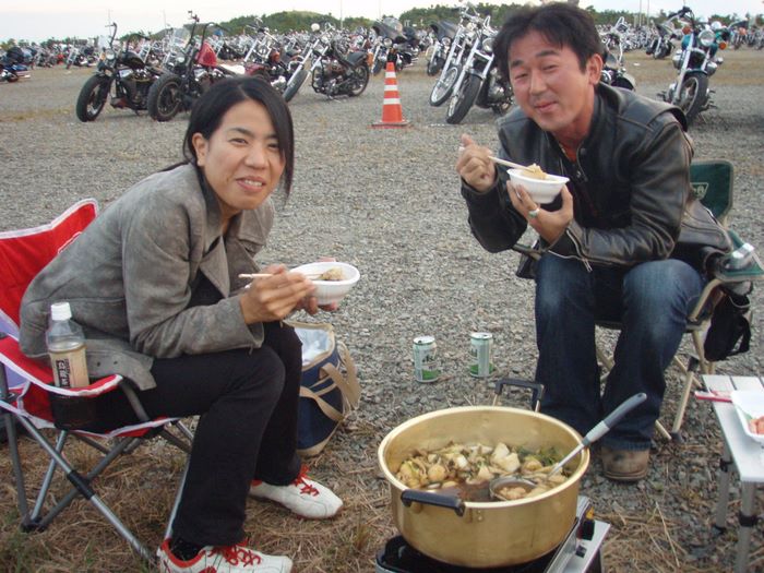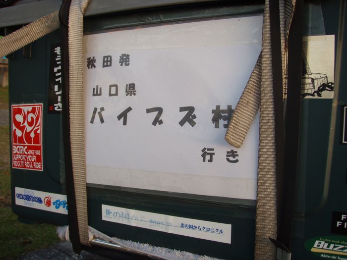 10月11日15時30分、すでに受付が開始されてる1300キロ先、山口県阿知須を目指し秋田を出発。途中酒田で雨と強風に当たりながら一路南下。今年はどんな出会いが待ってるのだろうと思いを膨らませ興奮してるのか眠気もなく岡山に入った頃には夜が明けていた。ここまで来たら後少し。途中、下道をちんたら走ってると、これまた1人でVIBES山口を目指し帰る途中のOSSAが広島に居るのが分かり急きょ宮島の厳島神社で合流。ここで会えたと言う感動で思わず握手にも力が入った。正直疲れがピークだったが最高嬉しかった。宮島で分かれてから目指すは山口。秋田を出て24時間後に無事会場到着。大阪の高森夫婦と合流後リーダーTOMOから渡されたキリタンポ鍋を山口の星空の下でいただく。TOMOからのさり気ない手紙に感動。嬉しかったです。会場では久々の会った仲間達との再会に喜び語り夜がふけ気が付いた時にはテントの中で朝をむかえてました。最後に集合写真を撮った後、再び会おうと言う約束と無事家に着くまでがミーティングと言う無事故の約束をして会場を後にした。
