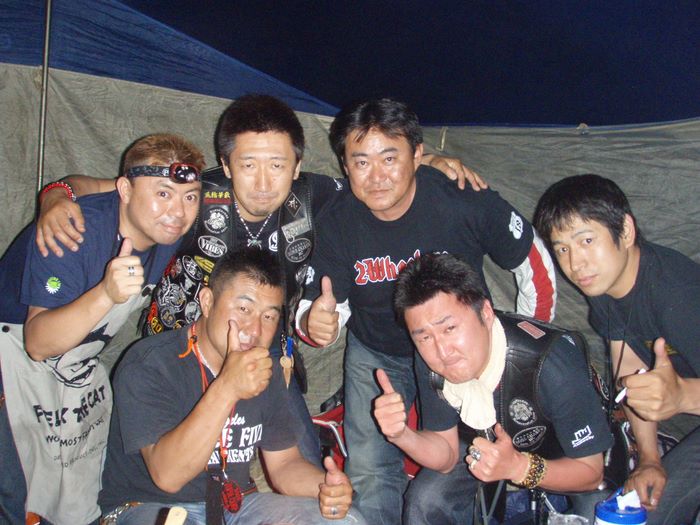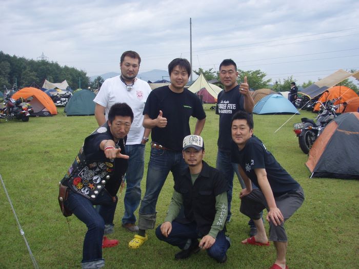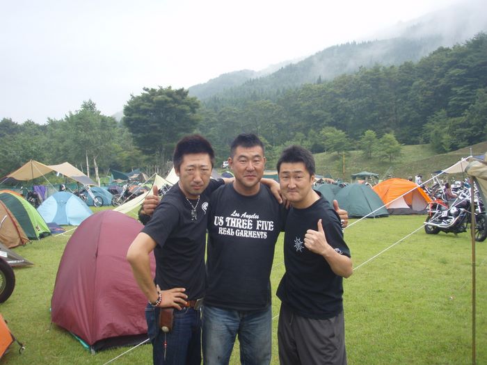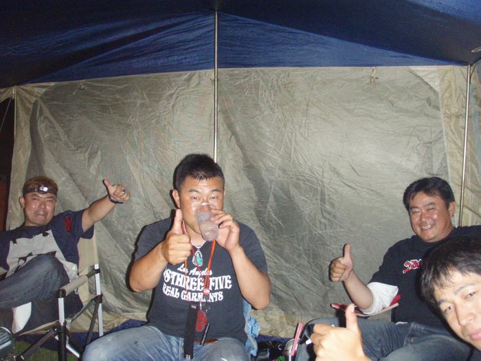 買出しを終え受付した16時頃にはようやく雨も上がり会場で群馬のたまちゃん、TAKE、ブラックストーン次郎、山梨のスーさん達と久々の再会!その後の宴では大盛り上がり!時間が立つのを忘れ夜な夜な酒を交わした。
