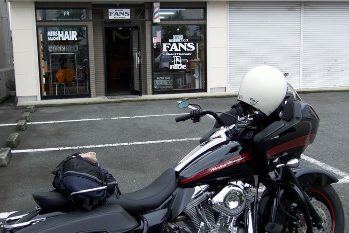 雑誌「RIDE」のコラボ企画の群馬・伊勢崎の「男の美容室ファンズ」を訪ねる為、朝3:00出発、濃霧の東北道を南下し営業開始時間の11:00に予定とおり到着です。もちろんヘアーカットをお願いします、カット中とりとめもないバイクの話、これがなかなか楽しい♪いきつけの店じゃ会話もしないでカット中は寝ている俺なんで新鮮です。遠距離割引で500円サービスしてくれ、ステッカーまでいただいてしまいました、ありがとうね♪髪切りに片道560km走るなんて生涯一度きりかも、お勧めはしないけど、こんな事が楽しいと思う気持ちを何歳になっても持ち続けていたい!!