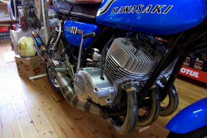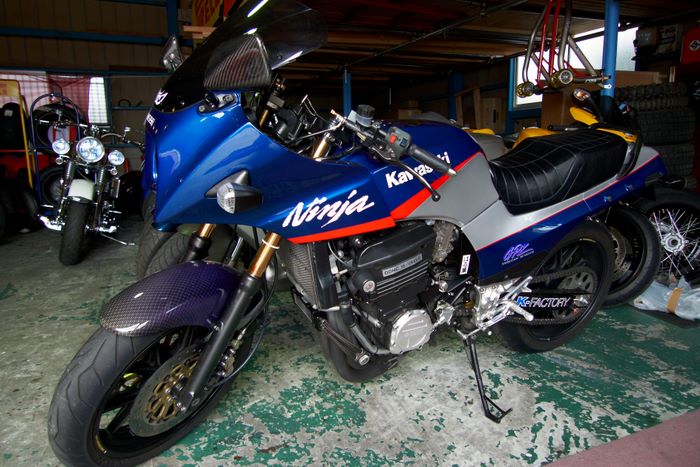 その後、前から来たかったニンジャやスポーツスターのカスタムで有名な「ブルドッカーダゴス」さんを訪問、カスタム忍者・マッハⅢ・車検整備中の東本さんのドマーニを見せてもらう!!どれも「カッコイイ」基本ハーレーに限らずバイク全般大好きなんです♪