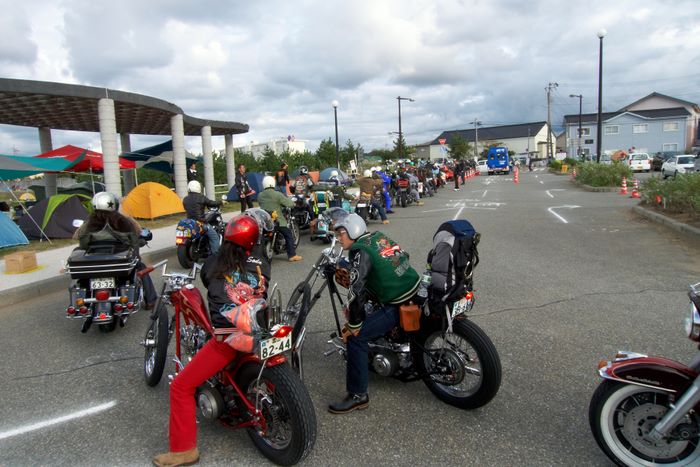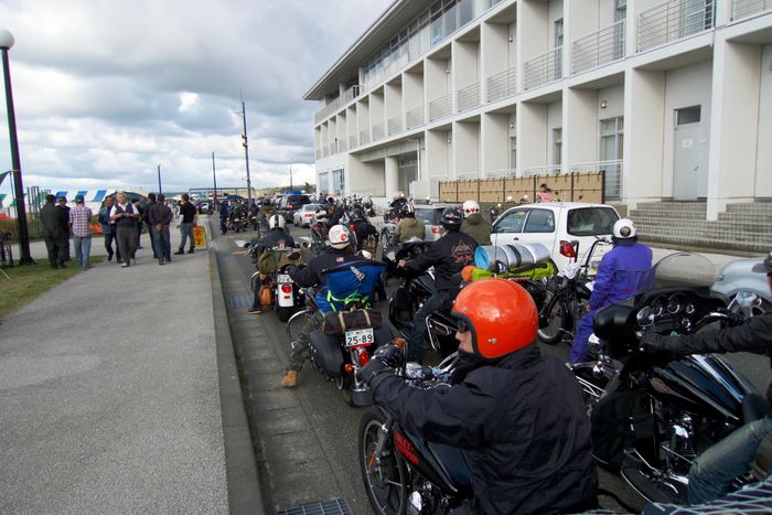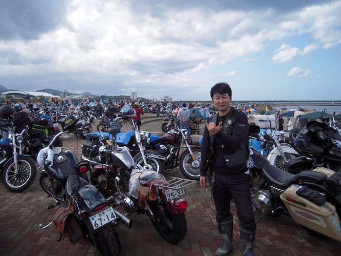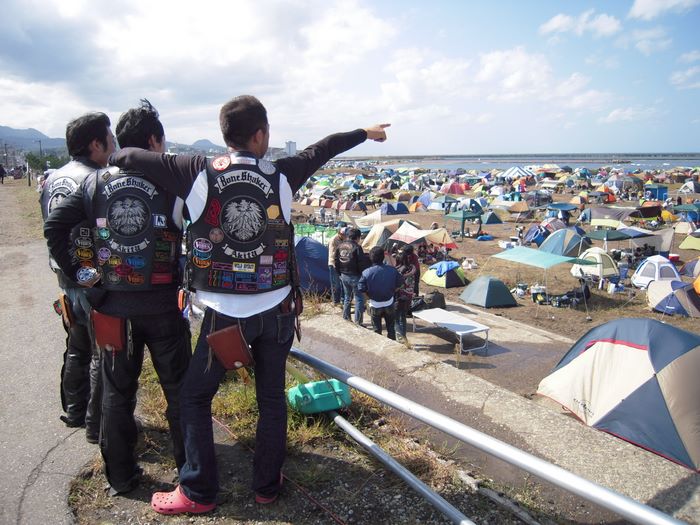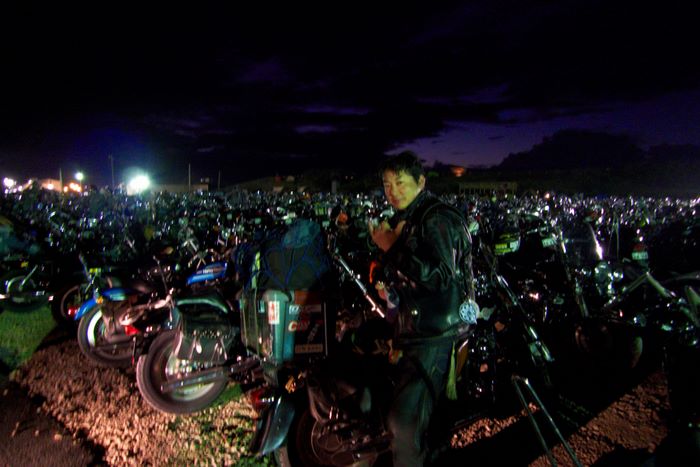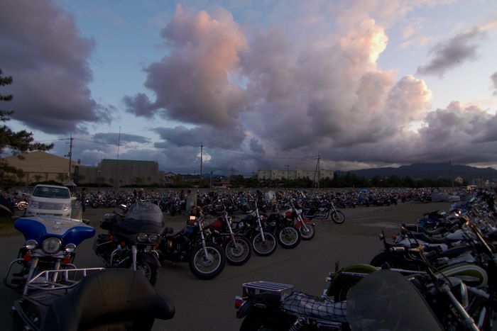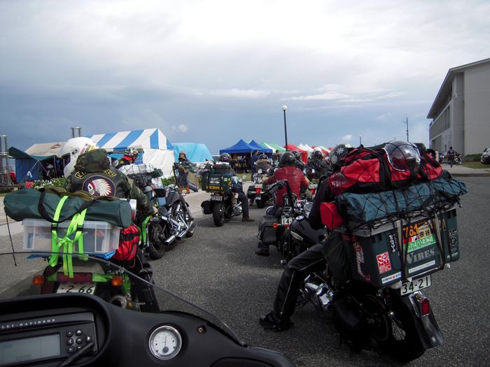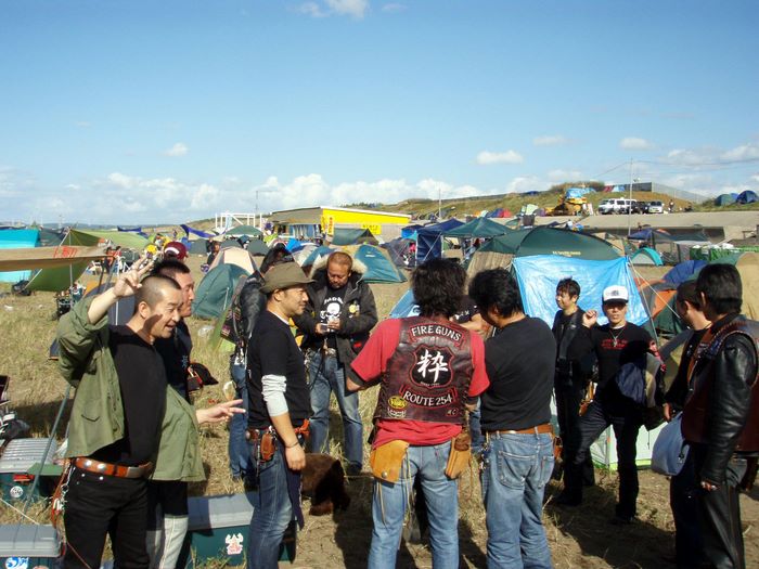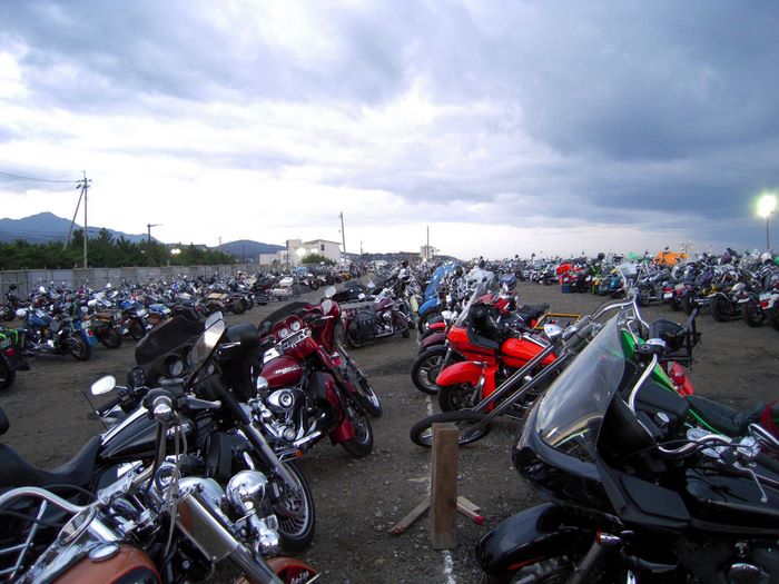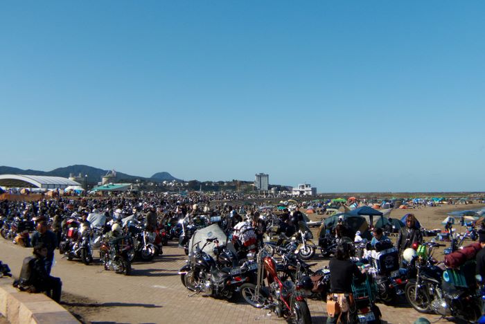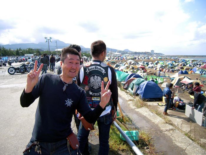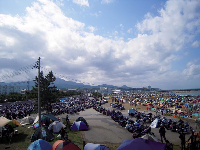 見渡す限りのテント、途切れなし入場してくるバイクの群れ、いったい何台・何人が柏崎に集まっているのだろう??