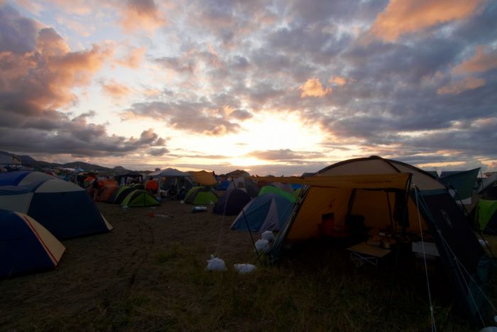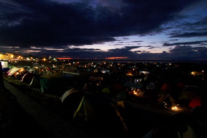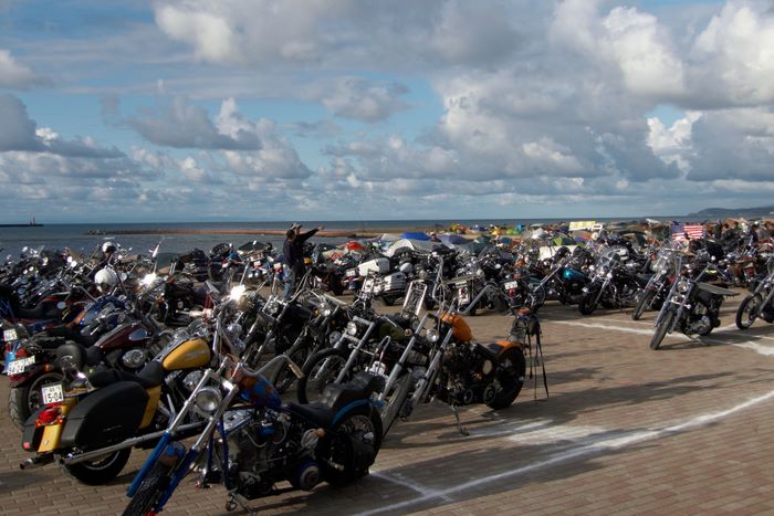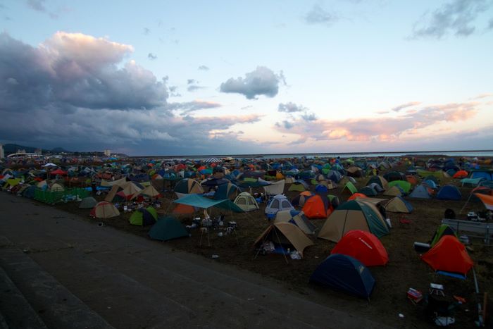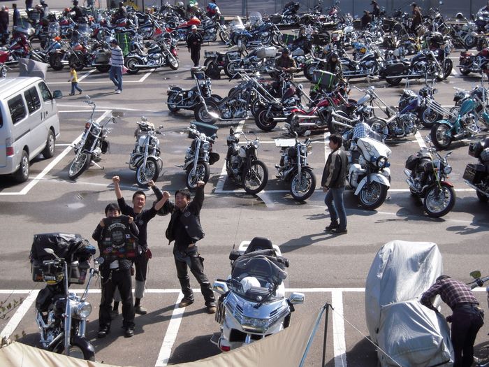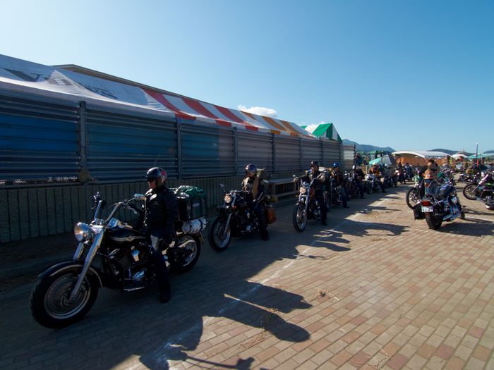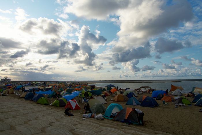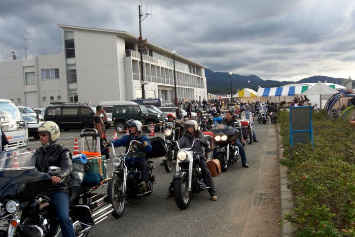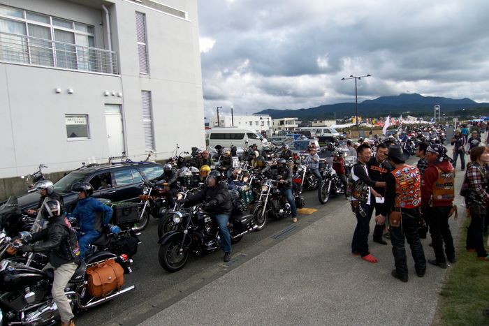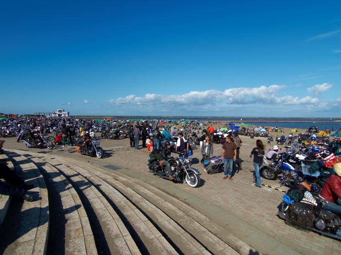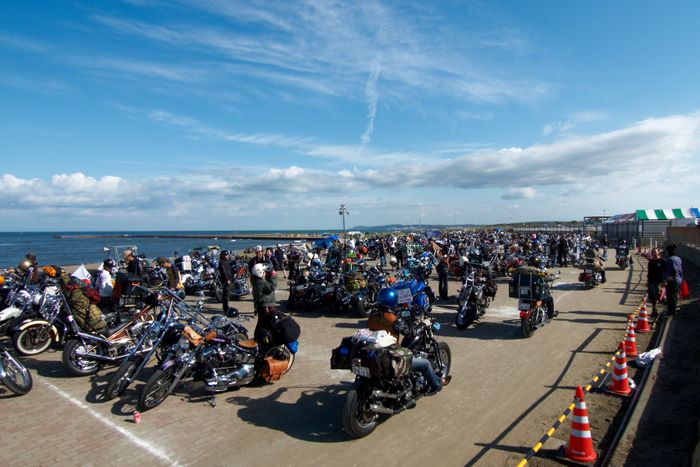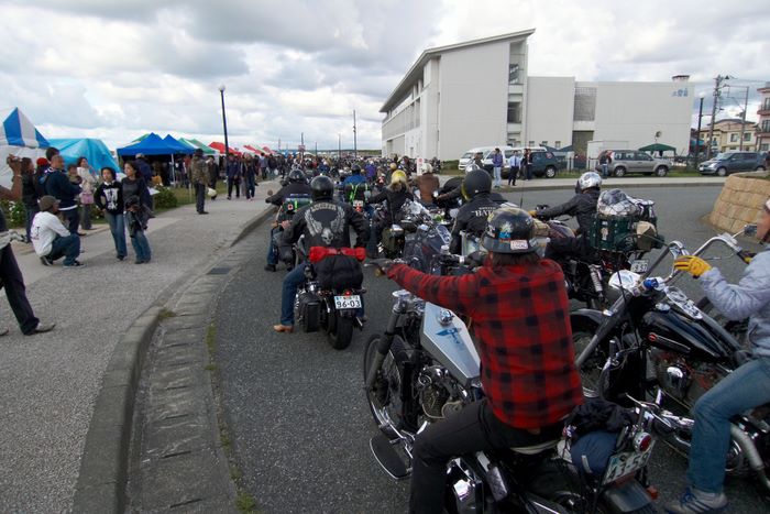 見渡す限りのテント、途切れなし入場してくるバイクの群れ、いったい何台・何人が柏崎に集まっているのだろう??