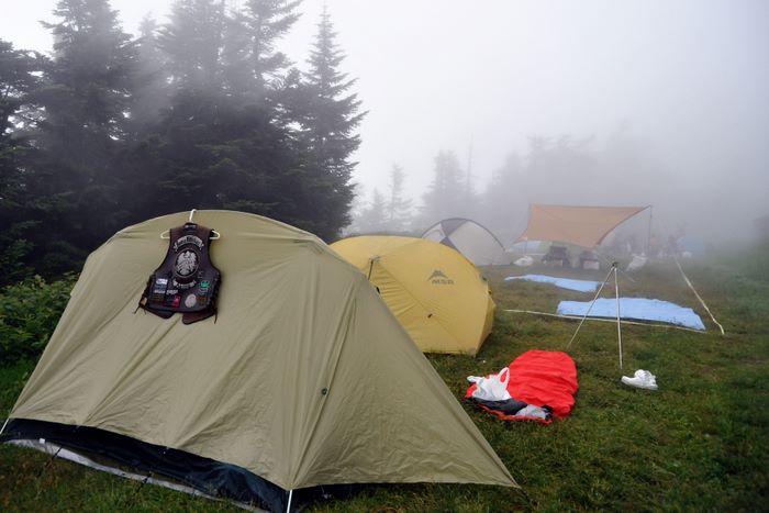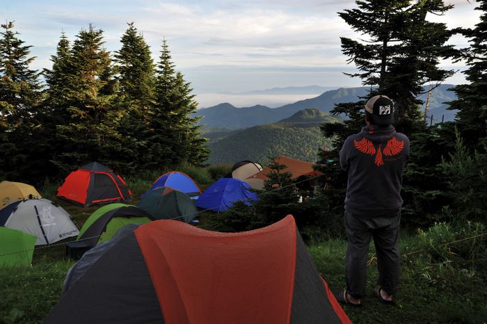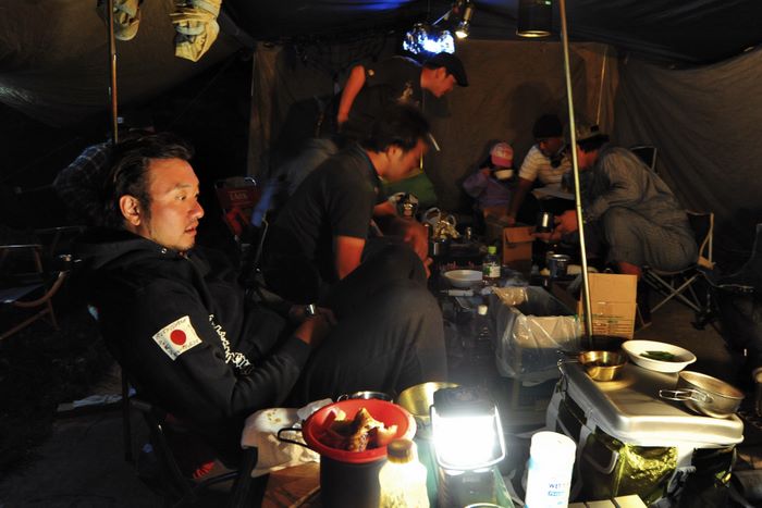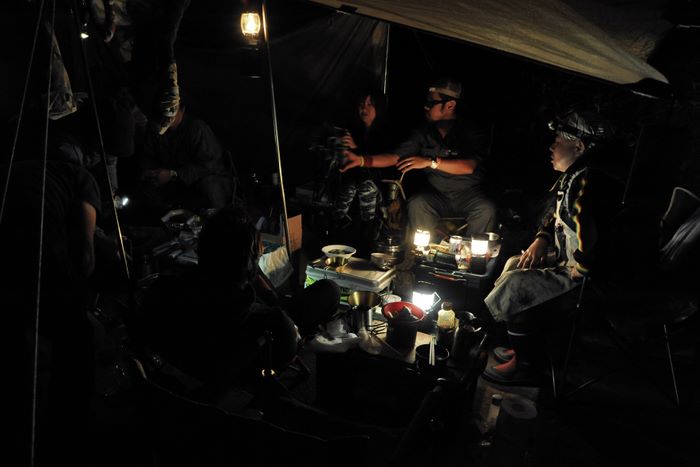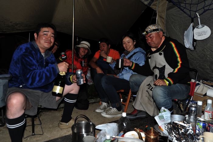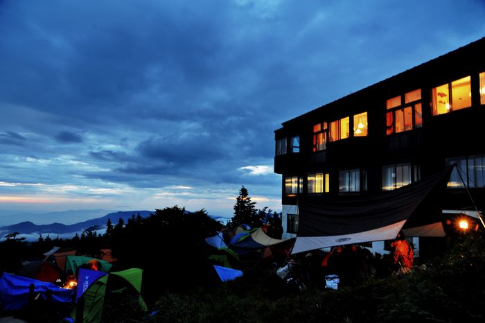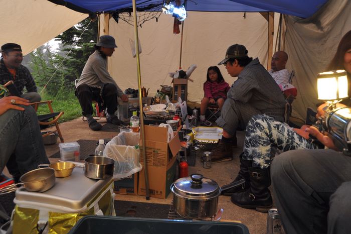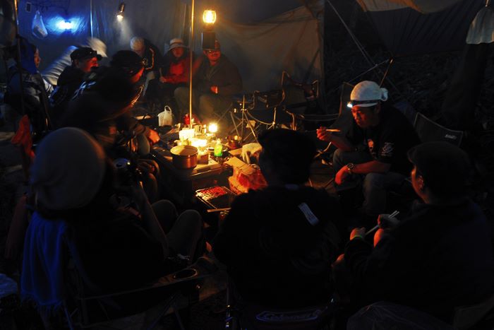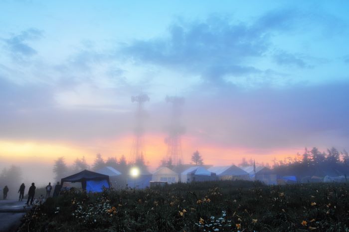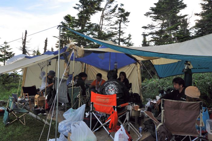 今回はアオケンさん・キョウちゃん達のタープにお邪魔、美味しく手の込んだ料理をたらふくご馳走になり、愛知軍団の漫才に大笑いして楽しく過ごさせていたたきました。朝は4時起床して朝焼け雲海撮影、日中は草津温泉、夕方からは夕焼け雲海撮影、撮影枚数約600枚、秋田で一番高い鳥海山よりさらに高い2305メートルでのキャンプ、雲の上での贅沢な3日間でした♪♪