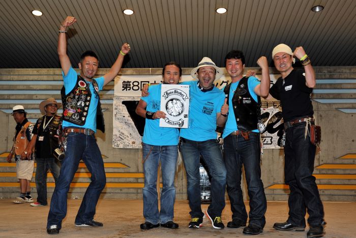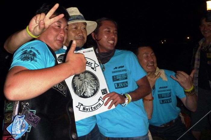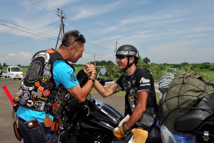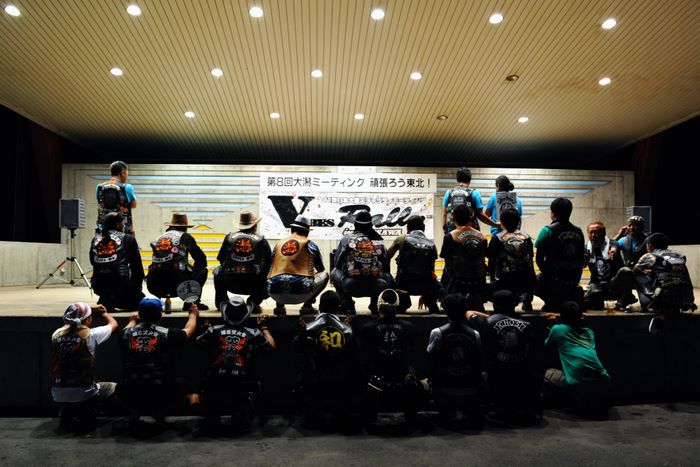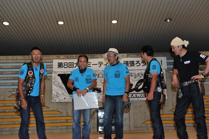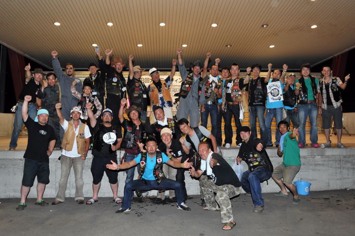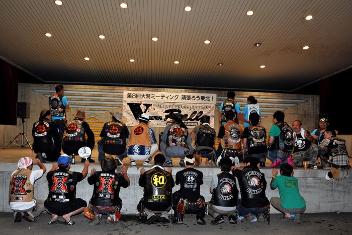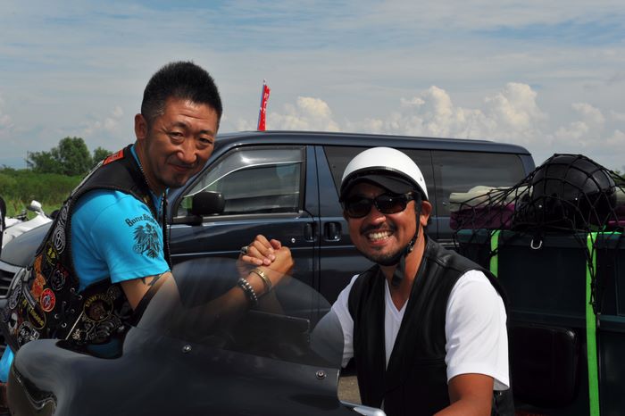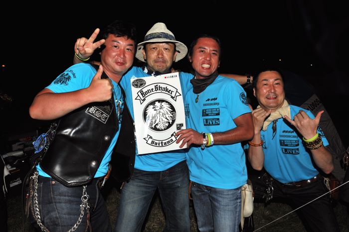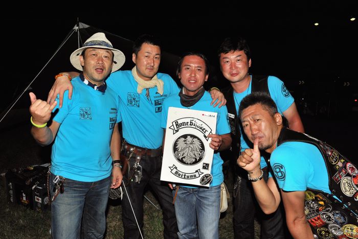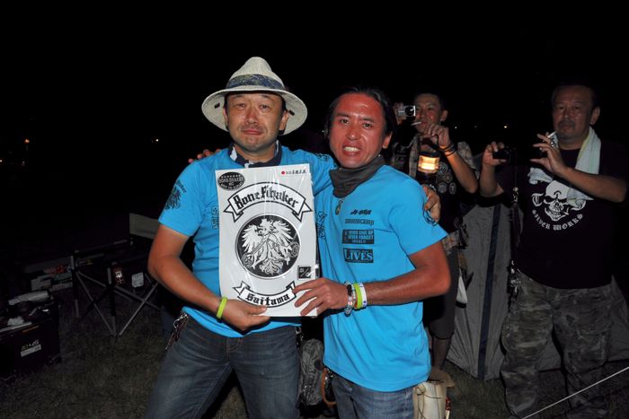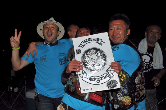 今年の大潟ミーティングは我らボーンシェーカーにとって特別なミーティングとなった。ジーマがメンバーとなって最初のミーティングで、背中のMCパッチを全員で渡す夜なのだ。ステージ上では気の利いたセリフは言えなかったが、ジーマの目を見て想いは伝わったと確信した。