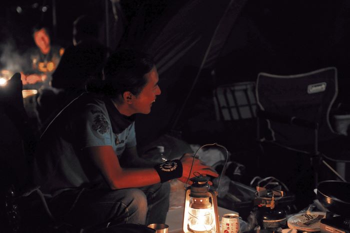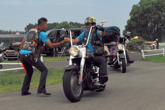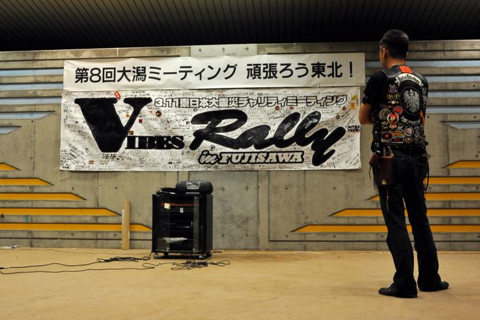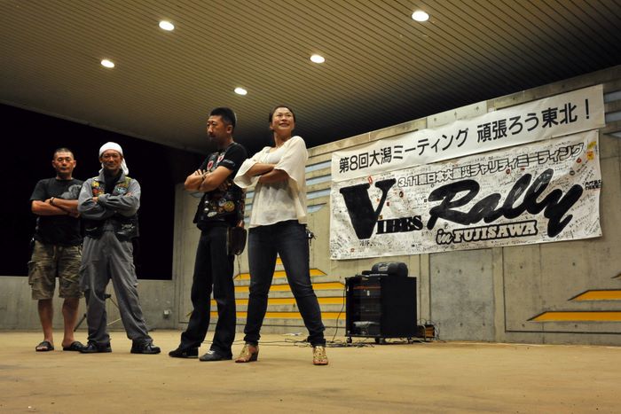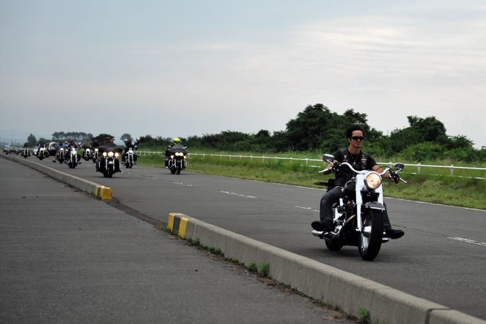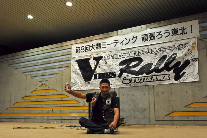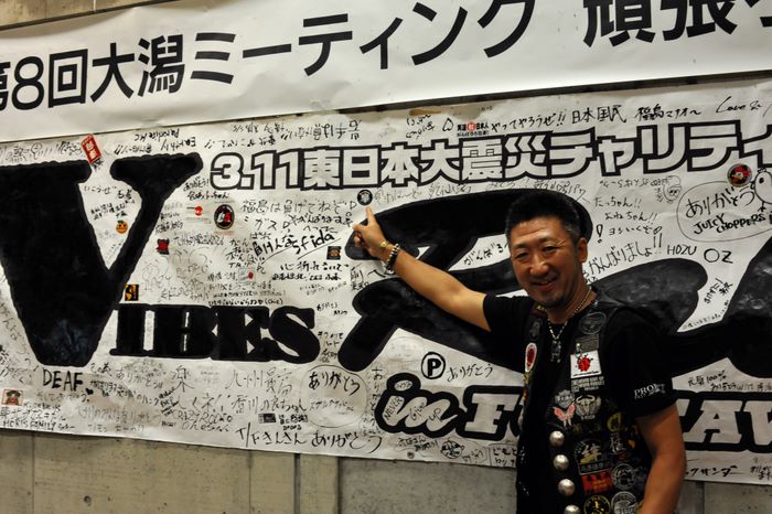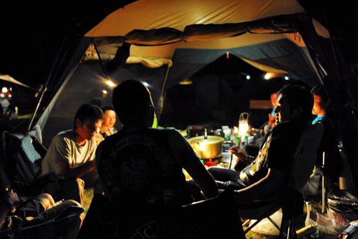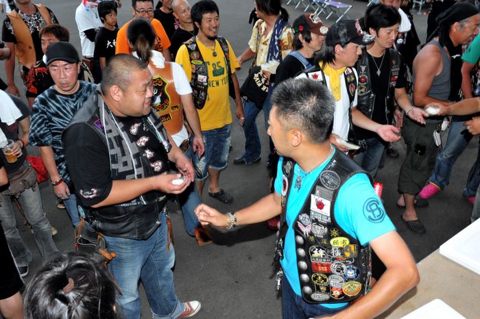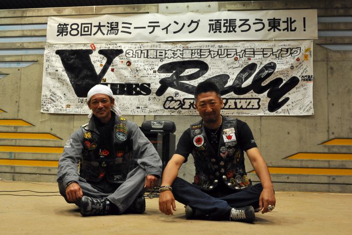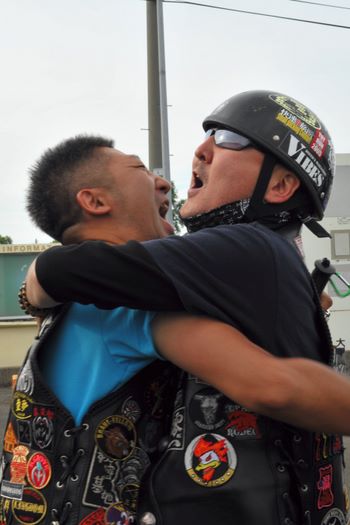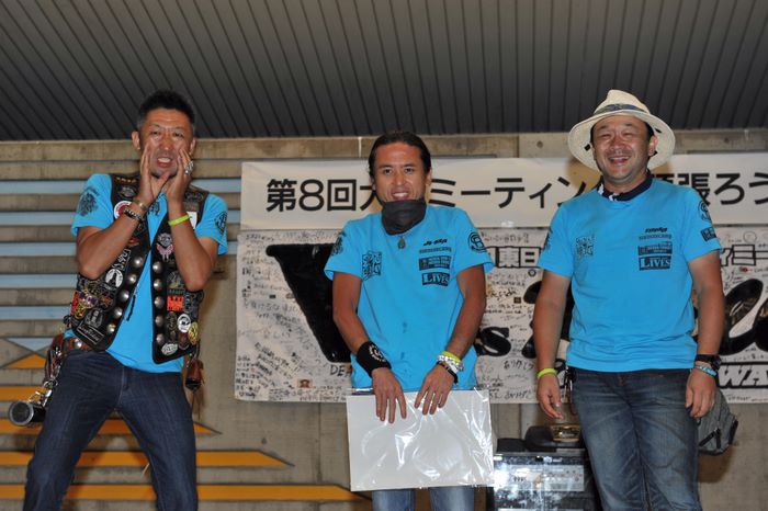 今年の大潟ミーティングは我らボーンシェーカーにとって特別なミーティングとなった。ジーマがメンバーとなって最初のミーティングで、背中のMCパッチを全員で渡す夜なのだ。ステージ上では気の利いたセリフは言えなかったが、ジーマの目を見て想いは伝わったと確信した。