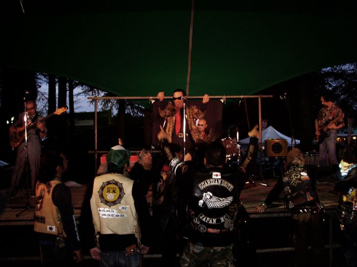 D-meetingと言えば雨。しかし去年、今年と快晴!拍子抜けしそうだが雨男とは言え晴れは大歓迎。会場には14時くらいに到着すると平日なのにすでにあちこちにテントやタープが張られすでに宴は始まってる。俺は大潟MTG木津屋さんや、疾風シェーキーなどのタープなどでマッタリと。夜、メンバーのJI-MAと合流しブラブラ飲みながら、食べながら。そこにwildケンさん登場!ファミリーの皆とも1ヶ月ぶりの再会。